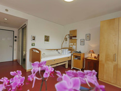 Die Zimmer sind möbliert mit Pflegebett, Kleiderschrank, Kommode, Nachttisch, Tisch und Stuhl. Wir möchten, dass sie sich in Ihren Räumen individuell einrichten können und wie Zuhause fühlen. Daher begüßen wir es sehr, wenn Sie Ihr Zimmer mit persönlichen Gegenständen einrichten. In diesem Fall verbleiben lediglich das Pflegebett und der Nachttisch im Bewohnerzimmer.