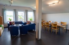 Menschen mit verschiedenen Behinderungen und mit verschiedenem Alter leben in der Wohnstätte.
