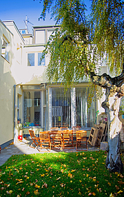 Das großzügige, urban gelegene Stadthaus ermöglicht jedem/r Bewohner*in ein eigenes Zimmer sowie zwei Bäder auf jeweils zwei Etagen nebst Gemeinschaftsräumen und großem Küchenbereich.