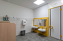 Die Kita ist mit vielen großen Fenstern hell und freundlich gestaltet. Jede Gruppe verfügt über einen Haupt- und einen Nebenraum, teils zusätzlich mit einem Schlafraum. Die Sanitärräume können aus jeder Gruppe zur Nutzung begangen werden. Entsprechend der inklusiven pädagogischen Arbeit im KinderReich gibt es einen Therapieraum für den Förderbedarf.