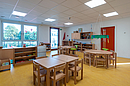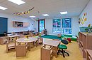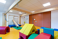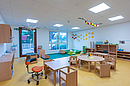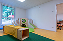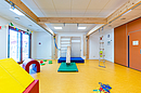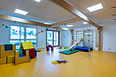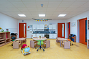 Im Unter- wie Obergeschoss steht für das Bewegungsbedürfnis ein großer Mehrzweckraum zur Verfügung. Verschiedene Differenzierungsräume für den kreativen, musischen und entspannenden Bereich sind ebenfalls im Haus verteilt. Die modern gestaltete Einrichtung verfügt über ein großzügiges Außengelände.
