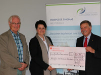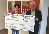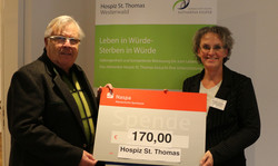 Ein weiterer Höhepunkt des Tages war die Übergabe einer Spende zu Gunsten des geplanten stationären Hospizes für den Westerwald in Dernbach. Ortsbürgermeister Andreas Quirmbach überreichte an den Vorsitzenden des Hospizverein Westerwald e.V., Heinz-Peter Rüffin, eine Geldspende in Höhe von 1.200 Euro, den Erlös des letztjährigen Adventmarktes. Herr Rüffin bedankte sich herzlich für die Spende und teilte mit, dass die erforderlichen Mittel für den Projektstart vorhanden seien und das Hospiz im nächsten Jahr errichtet werde.