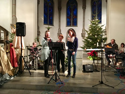 Das Wetter war anfangs trocken. Mit dem Gesang der Schüler der Pfarrer-Giesendorf-Schule unter der Leitung von Herrn Matthias-Daniel Wende kamen dann auch passend die ersten Schneeflocken und natürlich der Nikolaus mit einem großen Sack, voll mit kleinen Überraschungen.