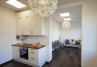 Im Aufenthaltsraum steht ein breites Angebot an warmen Getränken und Zeitschriften für Sie bereit. Auch die Küche kann von Ihnen genutzt werden.
