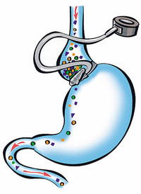 Das Magenband besteht aus einem weichen Silikonring, der über einen dünnen Schlauch mit einer sogenannten Portkammer verbunden ist. Nach dem Eingriff kann das Magenband über diese Portkammer gefüllt und damit die Größe des Ausganges des Vormagens individuell an die Bedürfnisse des Patienten angepasst werden.