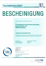 Das Traumazentrum am Dreifaltigkeits-Krankenhaus ist durch die Deutsche Gesellschaft für Unfallchirurgie zertifiziert.
