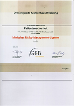 Das Dreifaltigkeits-Krankenhaus Wesseling hat zur Verbesserung der Patientensicherheit mit Unterstützung der GRB - Gesellschaft für Risiko-Beratung mbH - ein umfassendes klinisches Risiko - Management-System installiert.