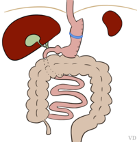Der Eingriff erfolgt unter Verwendung einer inneren Schiene, die den Durchmesser des Magenschlauches vorgibt.