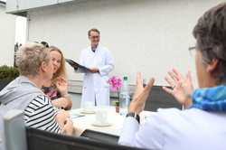 Für dieses Bedürfnis haben wir eine Dachterrasse, die mit einem Aschenbecher ausgestattet ist. Auf der Station darf natürlich nicht geraucht werden.