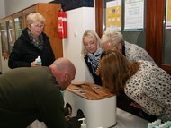 Einen Tag lang drehte sich alles um die helfenden Hände der Mitarbeiterinnen und Mitarbeiter der ViaNobis am Standort Gangelt, in deren Alltag die hygienische Händedesinfektion eine zentrale Rolle spielt. Aber auch Patienten, Bewohner sowie Besucher waren eingeladen, die Sauberkeit ihrer Hände überprüfen zu lassen. Unter Anleitung der Hygienefachkraft der ViaNobis, Petra Schreck-Tings, konnten sich Interessierte die Hände desinfizieren und im Anschluss in einem speziellen Schaukasten kontrollieren, ob sie auch wirklich jede Stelle ihrer Hände desinfiziert haben.