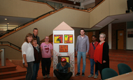 Das bunt gestaltete Haus wurde an Gangelts Bürgermeister Bernhard Tholen übergeben und steht für einige Wochen im Rathaus in Gangelt.