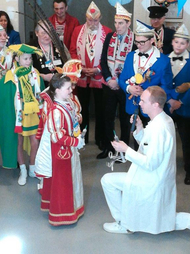 Feierlich wurden Prinz Alex I. von der Funkenartillerie „Blau-Weiß“ Wesseling e. V., Kinderprinzessin Rebecca II aus Urfeld und der Kinderprinz Paul I. von der GroWeKa mit ihren Adjutanten, dem Festausschuss und den Tanzcorps von den Mitarbeitern und Patienten des Wesselinger Dreifaltigkeits-Krankenhauses lautstark mit dem Lied „Einmol Prinz so sin…“ empfangen.
