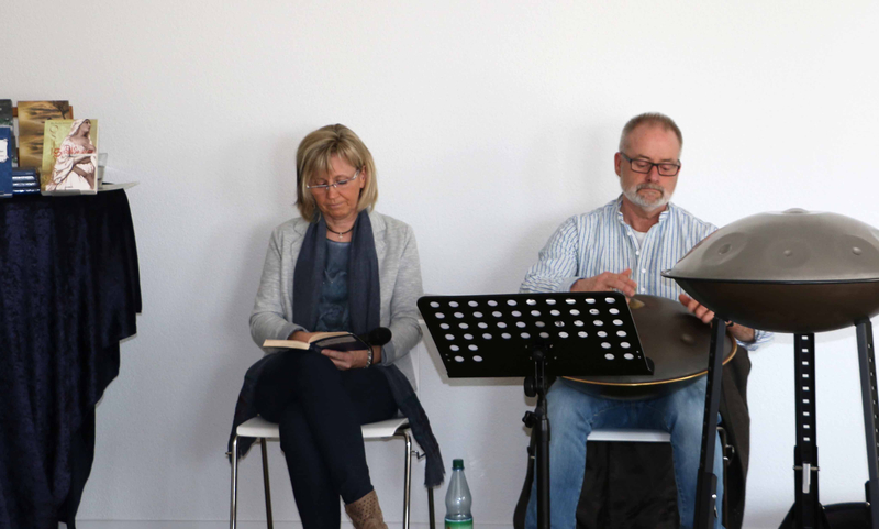 Begleitet wurde die Autorin dabei von Musiker Uwe Wagner, der mit seinen beiden Perkussionsinstrumenten Hang und Axiom einen außergewöhnlichen musikalischen Rahmen schuf. Ein Highlight für viele Gäste: Nach der Lesung durften sie sich selbst an den Instrumenten probieren und stellten somit schnell fest, dass es gar nicht so einfach ist, Hang und Axiom die entspannenden und wohlklingenden Töne zu entlocken.