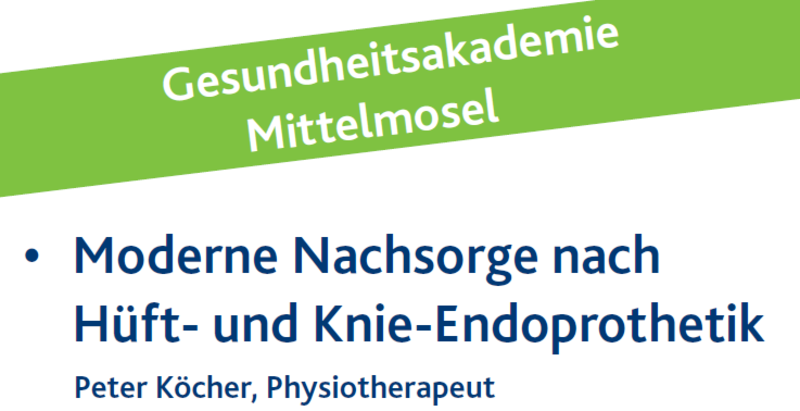 Das Lokale Gesundheitszentrum in Traben-Trarbach lädt herzlich zur nächsten Veranstaltung der Gesundheitsakademie ein: Peter Köcher, Physiotherapeut am Klinikum Mittelmosel, spricht zum Thema „Moderne Nachsorge nach Hüft- und Knie-Endoprothetik“.