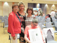 Bildunterschrift: Rita Lausberg bei der Preisverleihung durch Anne-Sophie Mutter (Mitte) sowie den zwei Vertreterinnen des Zonta-Clubs, Nicole Aellig-Kurz (links) und Beatrix Braun (rechts).