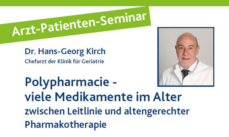 Dr. Hans-Georg Kirch referiert über "Polypharmacie - viele Medikamente im Alter zwischen Leitlinie und altengerechter Pharmakotherapie". Die Veranstaltung ist kostenfrei. Weitere Informationen erhalten Sie unter 02602 684-320.