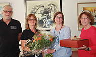 Die Kunstausstellung „Tierische Momente“ ist eröffnet“, v. l.: Künstlerehepaar Bernd Pickahn, Stefanie Pickahn-Lier, Alexandra Krause, Kaufmännische Direktorin Dreifaltigkeits-Krankenhaus, Wesseling, Margot Keila, Vorsitzende des Kunstvereins Wesseling e. V.