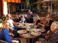 Der Donnerstag, ein wahrhaftiger Ehrentag, läutete für 2 Bewohner den Eintritt in ein neues Lebensjahr ein. Um dies gebührend zu feiern, startete der Tag bereits in den frühen Morgenstunden mit einem Besuch des Nachbarortes. Ein Stadtbummel sowie der Gang über den hiesigen Wochenmarkt förderten nicht nur die Geselligkeit. Auch die Kassen der Verkäufer klingelten um das ein oder andere, um modische Accessoires den Besitztümern der Bewohner hinzuzufügen. Zur klassischen Geburtstagsfeier durften dann ein köstlicher Kuchen sowie eine gute Tasse Kaffee nicht fehlen. Der letzte gemeinsame Abend führte alle Reisenden erneut in den Market Dome, wo das Finale dieser fantastischen Ferienmaßnahme mit einer Show der Superlative, mit viel Gesang und Akrobatik, zelebriert wurde.