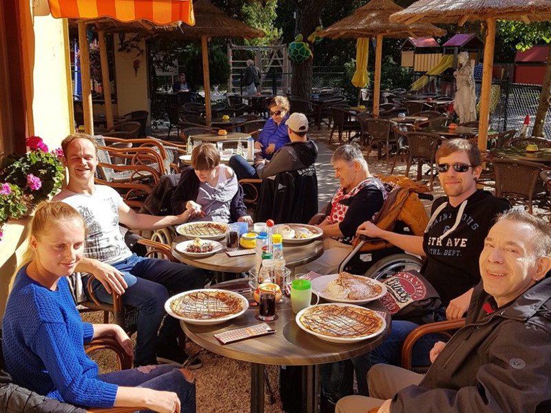 Der folgende Tag (Mittwoch) führte die enthusiastische Gruppe in das nahegelegene und wohlbekannte Pfannekuchenhaus. Rüstiges Ambiente und ein wohlig, warmer Sonnenschein ließen die kulinarischen Köstlichkeiten noch besser schmecken. Um das Angebot der Vielfältigkeit nicht zu mindern, startete am Abend eine feurige Grillparty mit guter Musik, knackigem Grillgut und einem selbstgemachten Nudelsalat.