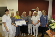 500 Euro kamen beim Kirchortfest im Mai als Erlös aus dem fleißigen Kuchen- und Kaffeeverkauf sowie weiteren Spenden zusammen, die Maria Petmecky mit drei Damen vom Vorstand an den Chefarzt der Palliativstation, Dr. med. Christoph Lerchen, überreichte.