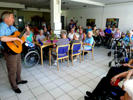Mülheim-Kärlich. Auf Anregung des Förderverein des Seniorenzentrums gestalteten der sprachbegabte Hermann Dötsch mit interessanten Geschichten und Hans Wohlgemuth mit seiner Gitarre einen unterhaltsamen Nachmittag im Seniorenzentrum St. Peter. Passend waren die Übergänge von den Geschichten auf die dann folgenden Lieder zur Laute. So wurde beispielhaft das Lied vom "Zeugnistag" vorgetragen, das am Ende des Schuljahres möglicherweise doch einige Schüler in Nöte gebracht hat und Eltern ihren Kindern großzügige Nachsicht zuteil werden ließen. "Kein schöner Land", ein beliebtes Volkslied gehörte ebenso zum Repertoire, das natürlich alle problemlos mitsingen konnten, da der Text im Langzeitgedächtnis gespeichert ist. Im Namen der Einrichtung und der Zuhörer gedankte sich die Leiterin Ursula Ewens für den ehrenamtlichen Einsatz. Ein Wiederkommen wurde ausdrücklich gewünscht.