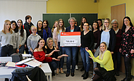 Bildunterschrift: Schüler des Unterkurses der Dernbacher Gesundheits- und Krankenpflegeschule mit Eva-Maria Hebgen bei der Spendenübergabe.