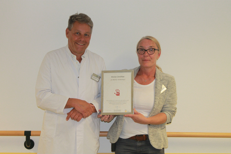 Düsseldorf. Gute Nachrichten gab es für das Hygieneteam des St. Martinus-Krankenhauses. Hygienefachkraft Sabine Schmitz und der Hygiene-Beauftragte Arzt Dr. med. Hans-Georg Steuber erhielten von der Aktion „Saubere Hände“ bereits Ende April das neue Bronze Zertifikat.