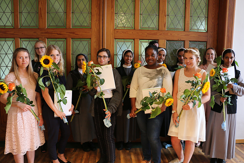 Das Foto zeigt die erfolgreichen Absolventen des Krankenpflegehilfekurses und Mitglieder der Prüfungskommission: Violetta Michel, Okulaja Oluwakemi, Lisa Marie Purpart, Sr. Alphonse, Sr. Liya, Aileen Oenning, Sr. Taniya, Sr. Ananya, Laura Engel, Sr. Aquina, Julika Kukat, Josephin Fechner.