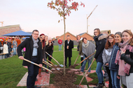 Nicht nur der Bürgermeister der Gemeinde Gangelt, Bernhard Tholen, folgte der Einladung gerne, sondern auch Vertreter der Hans Welter Bau GmbH sowie der ViaNobis, dem Betreiber der Kindertagesstätte. Annika Mertens, die Leiterin der Kindertagesstätte, dankte allen, die zum Gelingen des Projektes beigetragen hatten und überreichte als Dankeschön von den Kindern gestaltete Bilder. Auch Bernhard Tholen hatte ein besonderes Geschenk dabei: einen Amerikanischen Amberbaum. Der Bürgermeister ließ es sich nicht nehmen, den Baum gemeinsam mit den Kita-Mitarbeiterinnen einzupflanzen.
