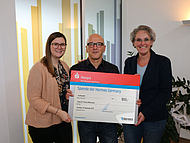 Bildunterschrift (v.l.n.r.): Vanessa Lorenz, PA to the General Area Manager Süd, Dirk Girke, Depotmanager Koblenz, Eva-Maria Hebgen, Leiterin Hospiz St. Thomas