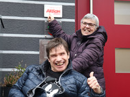 „Ich bin hier trotz Rolli viel selbstständiger geworden. In Hückelhoven kann man viel besser einkaufen gehen. Ich trau mich sogar alleine über die Straße. Das war mir in Gangelt manchmal zu gefährlich“, erzählt Reinhard Ott während er souverän im Rolli durch die Einrichtung führt und mit dem Aufzug von einer Etage zur nächsten fährt. Dass für ihn hier nichts mehr fremd ist, merkt man sofort. Bei der Fahrt mit dem Aufzug wundert er sich allenfalls über einen herrenlosen Wäschekorb: “Wer lässt den denn so alleine fahren?“.