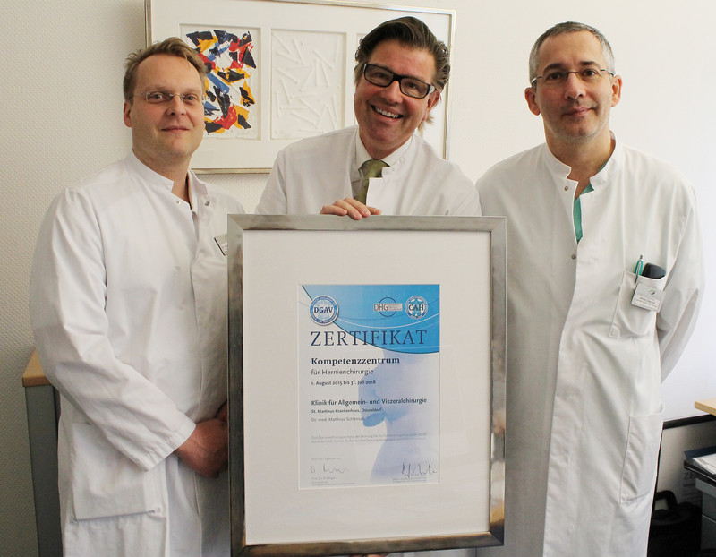 2015  Das Hernienzentrum am St. Martinus-Krankenhaus wurde erfolgreich durch die Deutsche Gesellschaft für Allgemein- und Viszeralchirurgie als Kompetenzzentrum in der Behandlung von Bauchdecken- und Leistenbrüchen zertifiziert. Ausgezeichnet wurden unter anderem die Qualität der Patientenversorgung, die fachlichen Kompetenzen der Ärzte und Pflegekräfte sowie die medizintechnische Ausstattung.