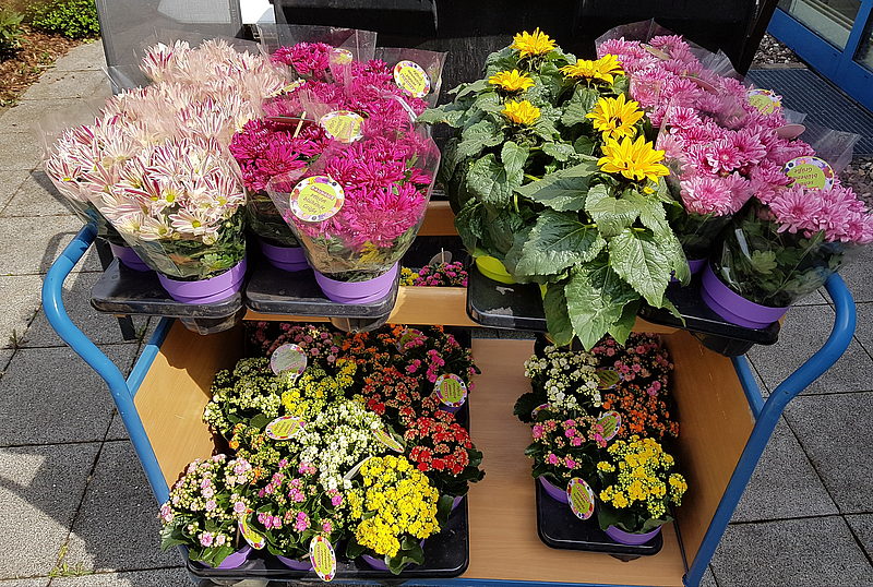 Eine Blumenspende des Bauhauses erreicht unsere Einrichtung kurz vor Muttertag