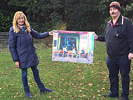 BU (v. l. n. r.): Karin van Zoggel überreicht Arnold Apweiler das Bild „Auszeit“