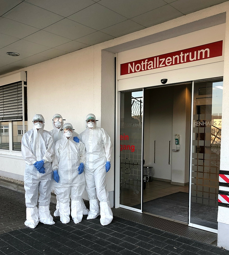 Das Notfallzentrum wurde mit der Ankündigung des möglichen Eintreffens mehrerer verletzter Personen in zunächst noch unbekannter Anzahl über das Ereignis informiert. Umgehend wurde die aktuelle Aufnahmekapazität geklärt und der Einsatzleitung vor Ort mitgeteilt. Im nächsten Schritt erfolgten die Vorbereitungsmaßnahmen für die Versorgung und Aufnahme möglichweise Verletzter in den zahlreichen Räumen des Notfallzentrums. Gleichzeitig diente der klinikeigene Hubschrauberlandeplatz als Bereitstellungsort für einen von der Integrierten Leitstelle beorderten Rettungshubschrauber in Warteposition.