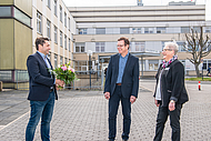 Bildunterschrift: Gratulation mit Corona-Abstand: Vladimir Lejrich (li.) mit Linda Schneider und Wolfgang Meier