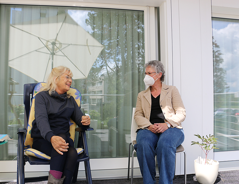 Ute Schindler ist seit Anfang April zu Gast im Hospiz St. Thomas in Dernbach. Die schwerkranke 70-Jährige wird hier rund um die Uhr von erfahrenen Pflegekräften versorgt. Nachdem ihr die Kraft fehlte, sich in der eigenen Wohnung selbst zu versorgen, wurde sie durch eine gute Freundin auf das Dernbacher Hospiz aufmerksam. „Die Mitarbeiterinnen und Mitarbeiter kümmern sich ganz wunderbar um die Gäste“, sagt die Seniorin. „Man fühlt sich immer gut begleitet und versorgt.“