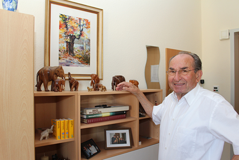 Zum Bild: Wolfgang Nellen hat seinen Umzug vom Dorf in die Stadt Andernach nicht bereut. In seiner Miniwohnung im Katharina-Kasper-Seniorenzentrum hat er sogar Platz für seine Elefantensammlung.
