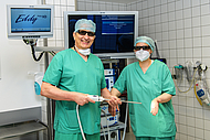 Bildunterschrift: Chefarzt Dr. med. Matthias Kötting mit OP-Leiterin Kirsten Schlink vor Inbetriebnahme des 3D-OP-Turms