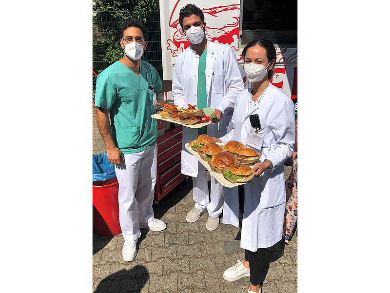 Kurzerhand beschloss man im Vorstand des Fördervereins, der in diesem Jahr sein „30 Jahre plus Eins“ Bestehen begeht, sowie der Betriebsleitung des Krankenhauses, einen Food Truck zu ordern, der sich auf die Zubereitung von Burgern, Pommes und Co. bestens versteht. An gleich zwei Terminen im Spätsommer brachten die gutgelaunten Food Truck-Teams alles mit, was nicht nur die Herzen der Burger Fans höher schlagen lässt.