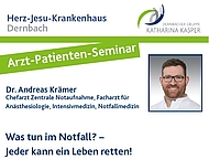 Dr. Andreas Krämer, Chefarzt der Zentralen Notaufnahme am Herz-Jesu-Krankenhaus und Facharzt für Anästhesiologie, Intensivmedizin, Notfallmedizin und Klinische Akut- und Notfallmedizin, informiert über das Thema: