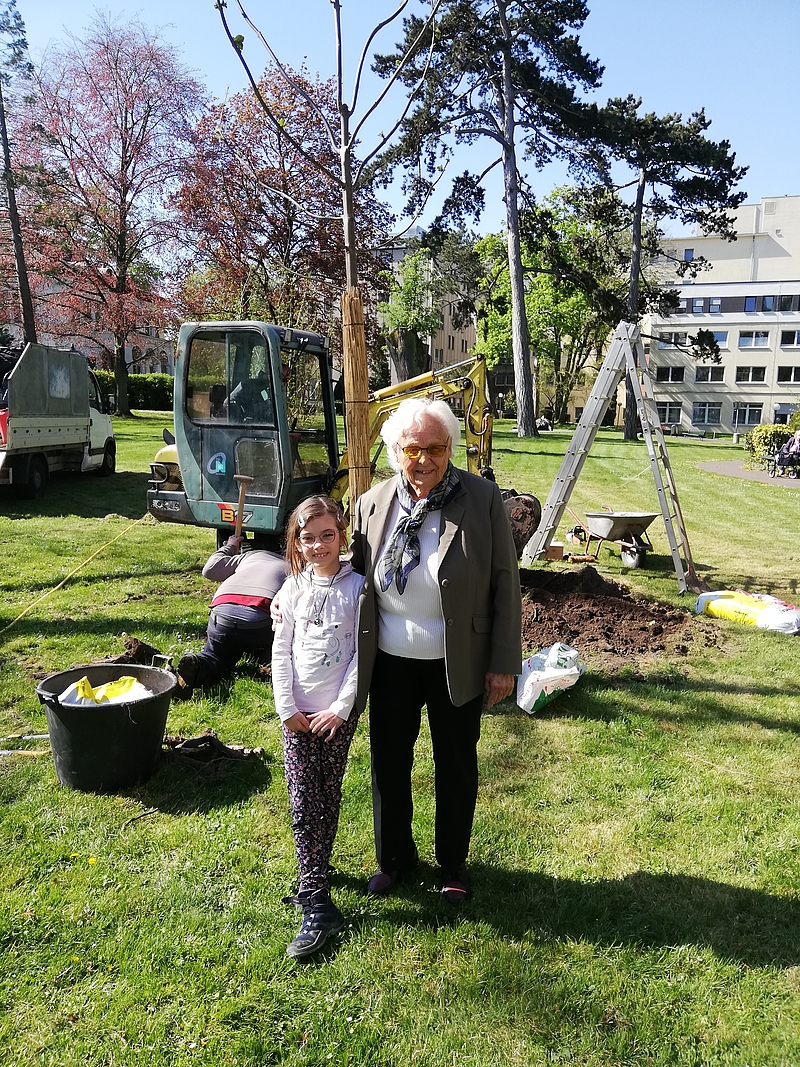 staunt Greta. „Natürlich. Ohne ihn gäbe es jetzt keinen neuen Baum. Jetzt fehlt nur noch eine Bank am Baum mit einer Plakette.“ Greta strahlt ihre erwachsene Freundin an, die ihre Großmutter sein könnte. „Dann müssen wir einfach noch eine Tombola machen, damit Du und alle anderen hier unter dem Baum sitzen können“, schlägt sie der Runde lachend vor. Auch Wohnheimleiterin Brigitte Hoppe findet die Idee gut. „Dazu gibt es dann eine Plakette, damit jeder weiß, wer sich so toll für unseren Park einsetzt.“