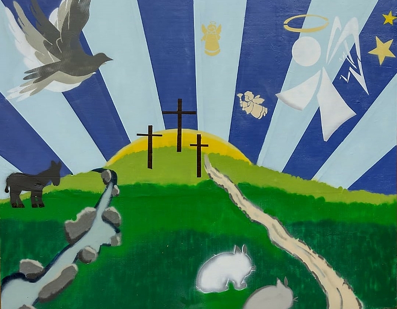 Vor Ostern beschäftigten sich Messdiener der Gemeinde und Jugendliche, die in der Jugendhilfe leben, mit der Thematik der „Auferstehung“. Zusammen gestalteten sie ein Bild passend zum Thema und entwickelten hierbei ein tolles Gemeinschaftsgefühl. Es wurde überlegt, vorgemalt und schließlich ausgemalt und gestaltet. Zum Abschluss aßen die Jugendlichen gemeinsam. Das Bild wurde in der Osternacht in der Brüggener Kirche enthüllt.