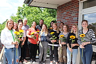 BU: 11 von 17 Auszubildenden zusammen mit den beiden Einrichtungsleitungen Martin Nicolaes (4. v.re.) und Ilka Gerigk (4. v. li.), die ihre Prüfung bestanden haben
