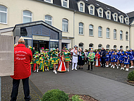 Gegen 13:30 Uhr empfing unser Begrüßungskomitee aus bunt verkleideten Mitarbeitenden Prinz Sascha und sein Team nebst Adjudanten und dem Festkomitee mit dem Karnevalslied „Einmol Prinz zo sin“. Mit an Bord waren auch die Kinderprinzessinnen Carlotta I, die aus der großen Karnevalsgesellschaft der Gro-We-Ka Wesseling stammt und die erste „Frau“ in der Geschichte der Kinderprinzen, darstellt sowie Melina I., Melina Weiß aus Urfeld, die vom Tanzcorps der Prinzengarde Blau Weiß Urfeld begleitet wird.