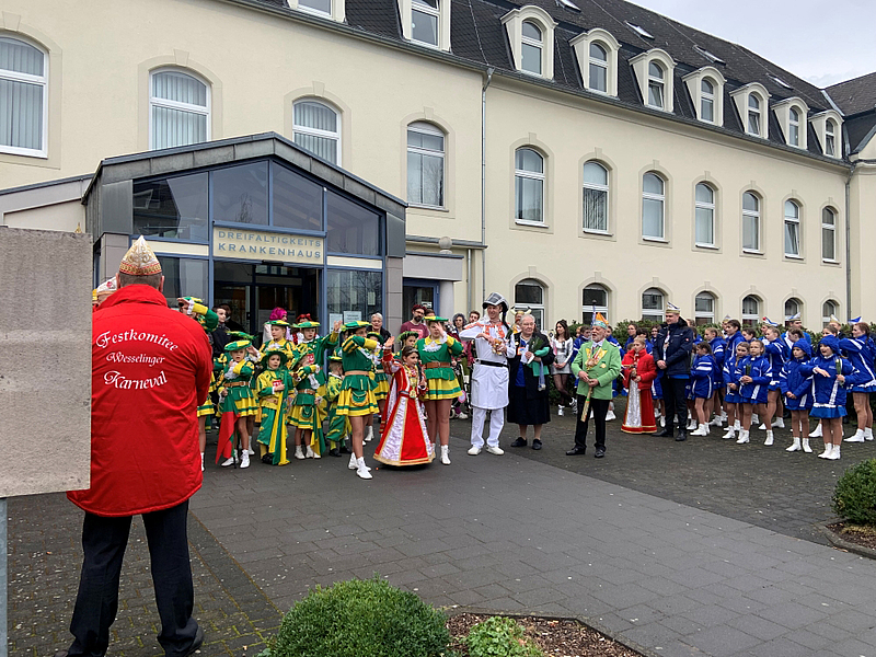 Es ist eine liebgewonnene Tradition , dass der Prinz Karneval aus Wesseling unserem Dreifaltigkeits-Krankenhaus gemeinsam mit seiner Garde einen Besuch abstattet und auch unsere Patientinnen und Patienten auf den Stationen mit guten Wünschen und „Strüßjer“ bedenkt.