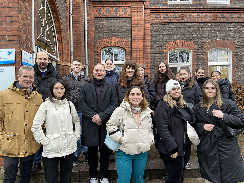 Während einer Führung über das Gelände der Kaiserswerther Diakonie und durch den geschichtsträchtigen Stadtkern gab es einen Einblick dazu, wie Patientinnen und Patienten während des zweiten Weltkrieges untergebracht, versorgt und gepflegt wurden. Im sogenannten Stammhaus lernten die Schülerinnen und Schüler das Wirkungsfeld von Theodor Fliedner kennen.