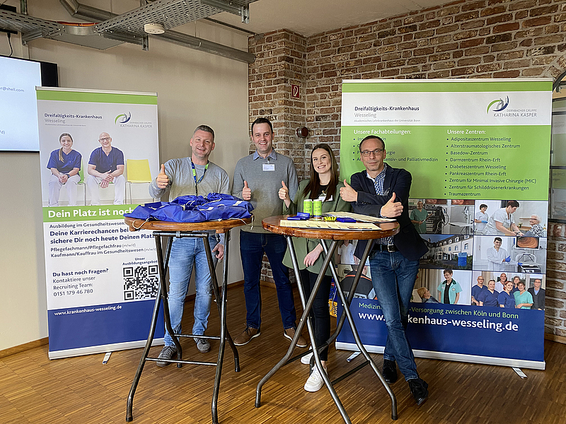 Letzten Samstag waren wir mit unserem Recruiting Team und der Pflegedirektion als Aussteller bei der Ausbildungsbörse im Wesselinger Rheinforum. Als eines von rund 30 teilnehmenden Unternehmen aus den unterschiedlichsten Branchen haben wir uns auf viele Besucherinnen und Besucher gefreut und waren begeistert von den vielen tollen Gesprächen, die wir geführt haben.