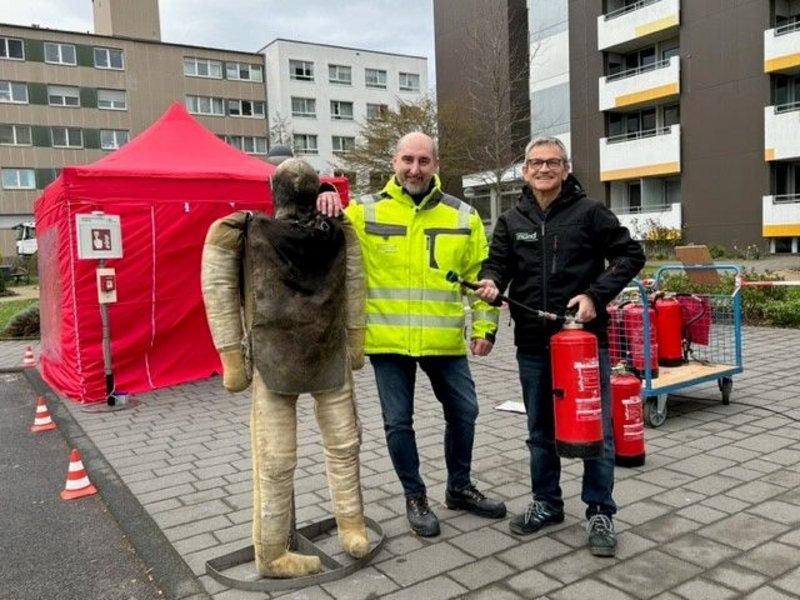 Zwei Sicherheitsingenieure brachten unsere Mitarbeiterinnen und Mitarbeiter in puncto Brandschutz auf den neuesten Stand, um für den Ernstfall gerüstet zu sein. Dabei steht "Brandschutz" für alle Maßnahmen, die der Entstehung und Ausbreitung eines Brandes vorbeugen, die Rettung von Mensch und Tier sowie wirksame Löscharbeiten ermöglichen. Neben einer kurzen Theorieeinheit ging es vor allem um ganz praktische Fragen: Wie verhalte ich mich richtig, wenn es brennt? Welche Feuerlöscheinrichtungen gibt es im Haus? Wen muss ich informieren, wie bediene ich den Feuerlöscher und wie bringe ich verletzte Personen in Sicherheit? Die jeweils 45-minütigen realitätsnahen Trainingseinheiten zwischen Parkhaus und Patientengarten aufgebaut gaben Antworten auf diese und weitere Fragen. Viele Kolleg*innen nutzten ihre Chance, den Feuerlöscher probeweise in Gang zu setzen und die präparierten Brandherde unter kontrollierten Bedingungen zu löschen. „In Arbeitsbereichen kann nahezu jeder größere Brand durch den schnellen und richtigen Einsatz von Handfeuerlöschern in der Entstehungsphase gelöscht werden“, so Sicherheitsingenieur Frank Mund, der bei den Übungen unseren Mitarbeiter*innen zur Seite stand. „Deshalb ist es so wichtig, den Umgang mit den vorhandenen Handfeuerlöscheinrichtungen zu schulen. Selbstverständlich stehen bei so einer Übung immer die Sicherheit der Mitarbeiter, der Umgebung sowie der Umwelt an vorderster Stelle.“ Wir danken allen Kolleginnen und Kollegen, die während der Übungen alles gegeben haben. Vielen Dank für Euren tollen Einsatz! Selbstredend: Ohne fachliches Knowhow innerhalb des Unternehmens (z. B. durch eine Betriebsfeuerwehr), ist von der Entfachung eines Feuers zu Übungszwecken natürlich dringend abzuraten