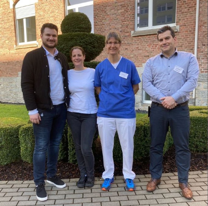 Im Bild von links nach rechts: Mumin Delic, Sarah Schneider, Rebecca Dietrich und Pflegedirektor Jörg Philipps